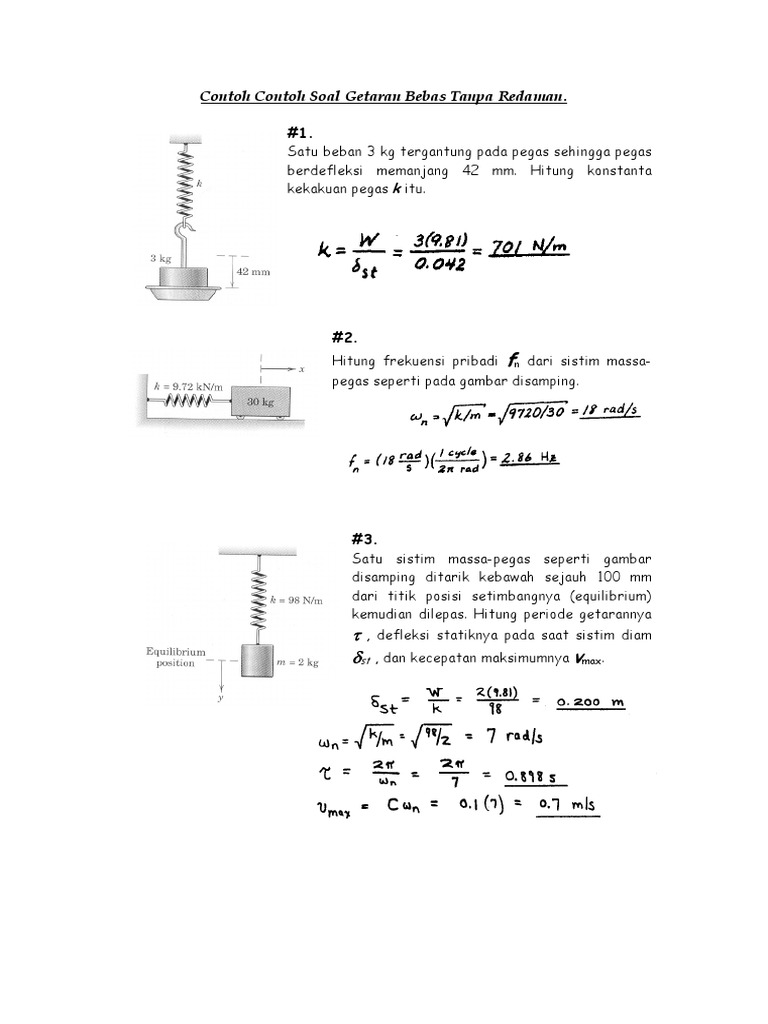 Contoh Soal Getaran Bebas Tanpa Redaman