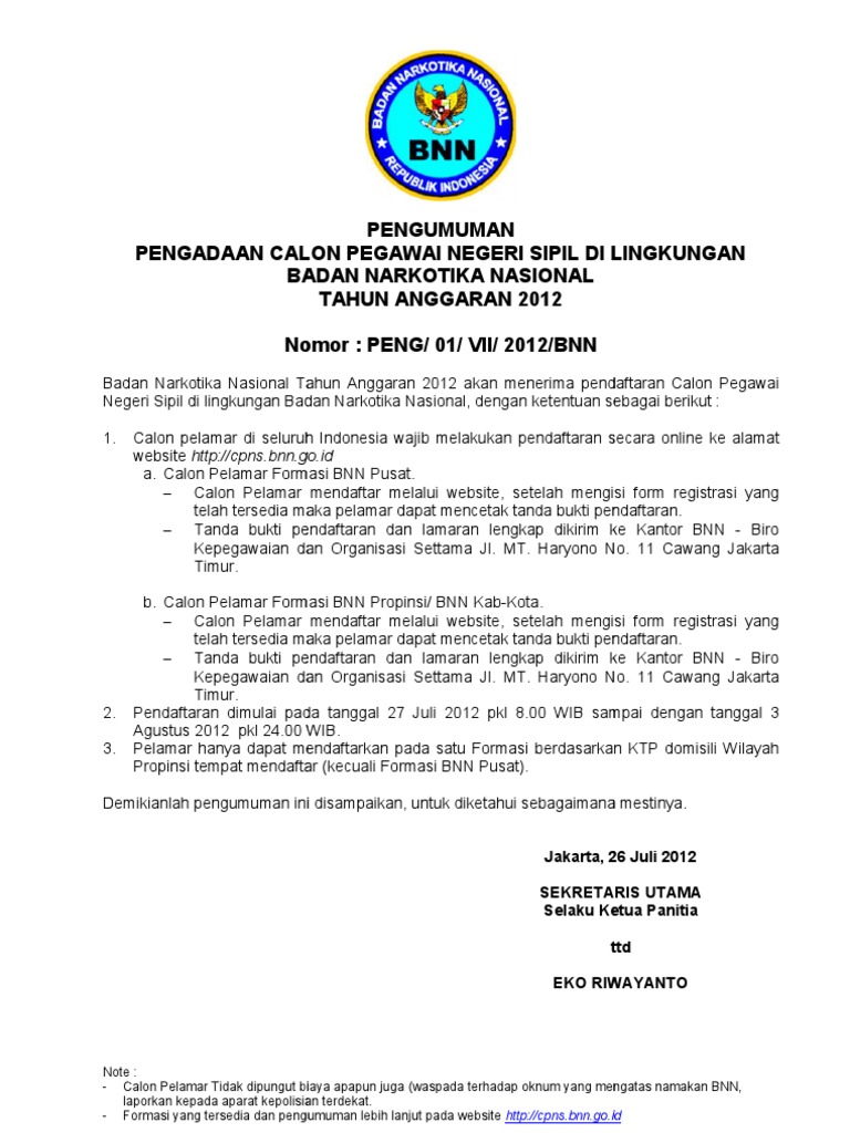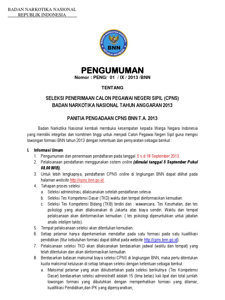 Pengumuman Jumlah Lowongan Formasi Cpns Bnn 2018 Badan Narkotika Nasional Tipssehatcantik Com