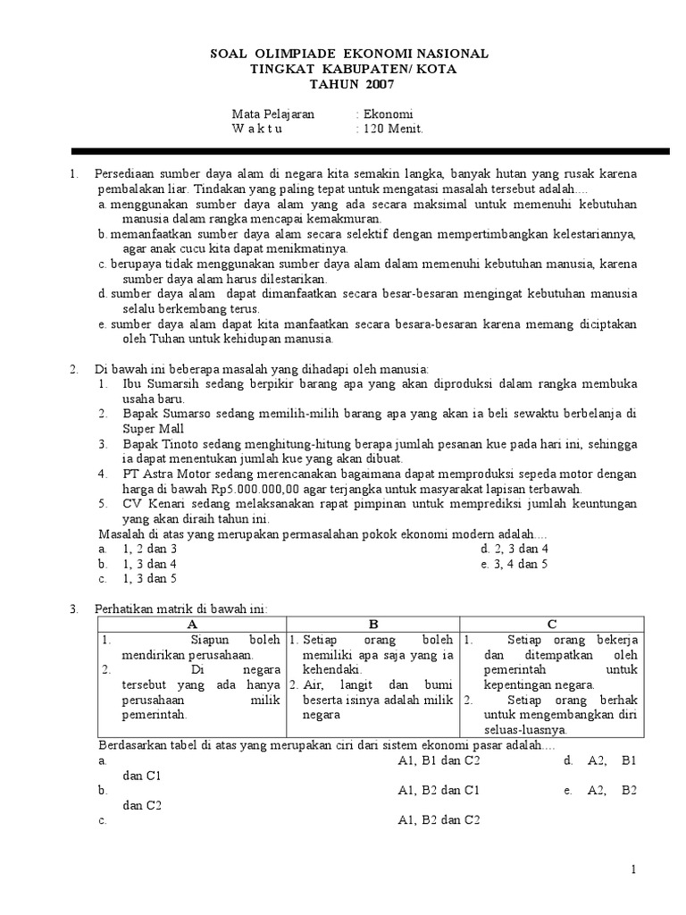 Soal Olimpiade Ekonomi Sma 2018 Guru Galeri