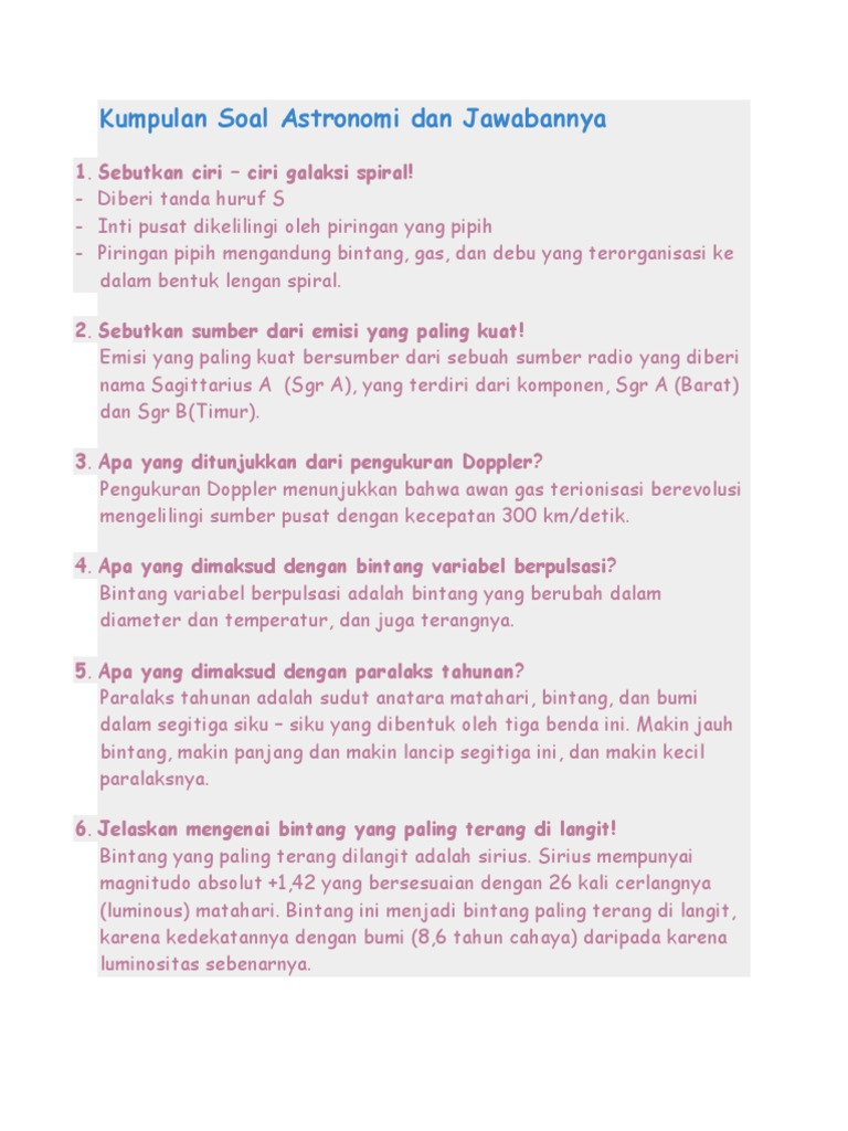 Kumpulan Soal Astronomi Dan Jawabannya
