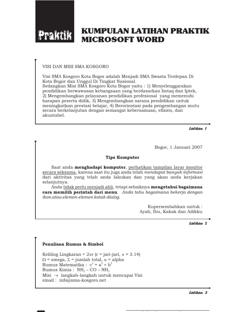 Latihan praktikum microsoft word kls. Word 2007 Untuk Nanti 100 100 menganggap dokumen ini bermanfaat Tandai dokumen ini sebagai bermanfaat 0 0 menganggap dokumen ini tidak bermanfaat Tandai dokumen ini sebagai tidak bermanfaat. Simpan ulanglah file tersebut menjadi nama yang lain yaitu latihan 5 5.