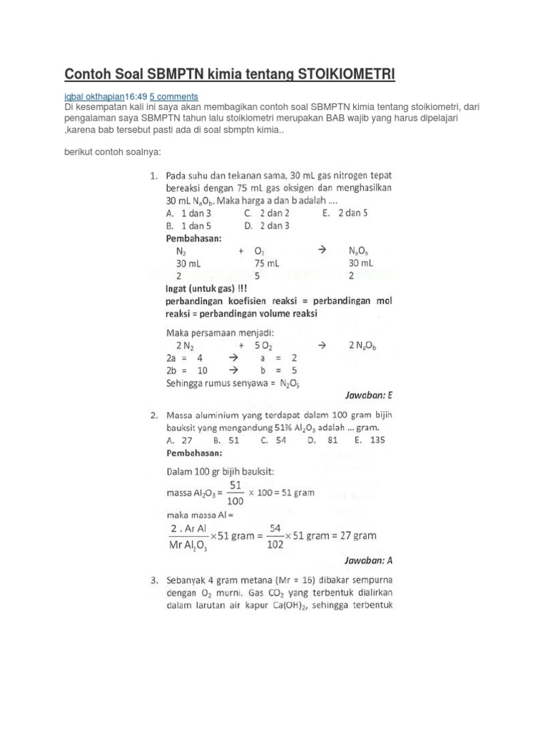 Contoh Soal Sbmptn Kimia Tentang Stoikiometri