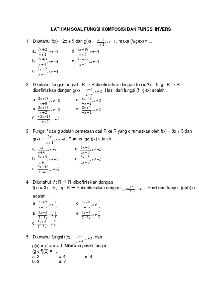 Pdf Latihan Soal Fungsi Komposisi Dan Fungsi Invers Lelly Mawarni Academia Edu