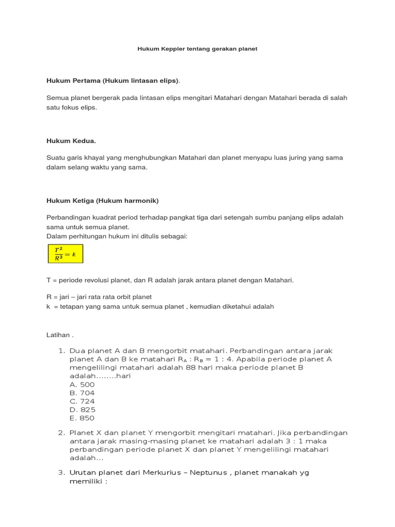 Contoh Soal Hukum Kepler Download File Guru