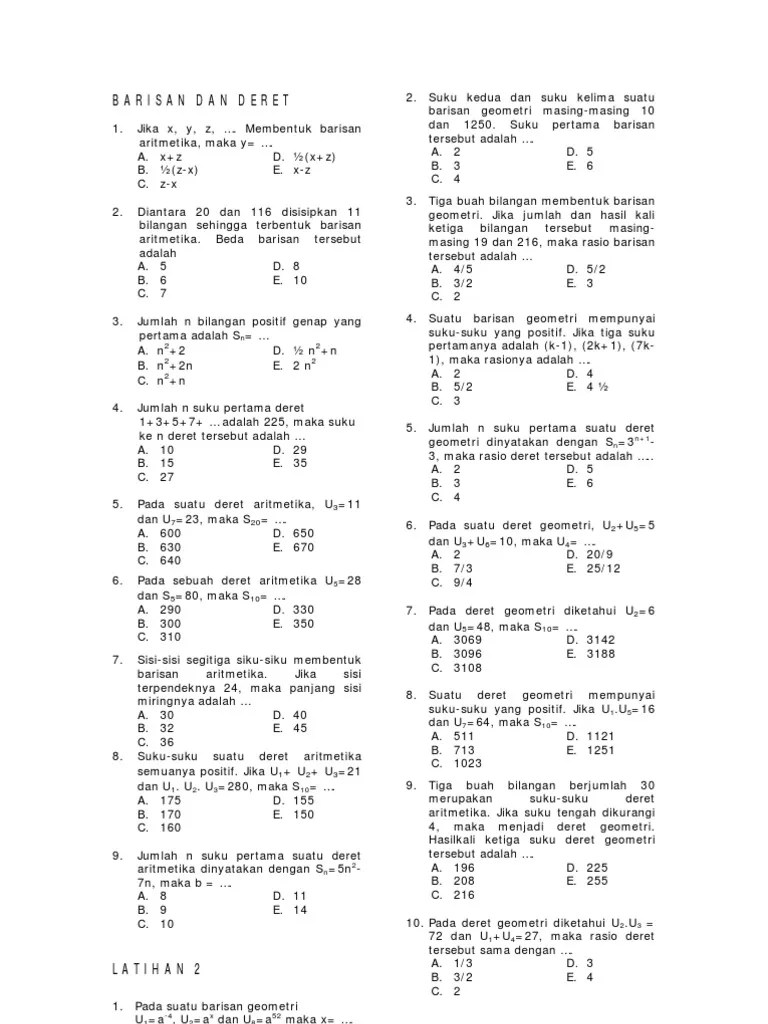 Kumpulan Soal Barisan Dan Deret Aritmatika