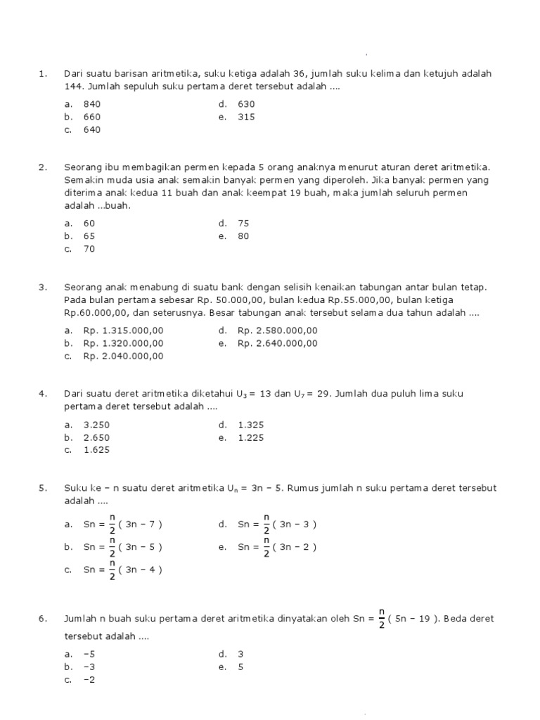 Kumpulan Soal Barisan Dan Deret Aritmatika